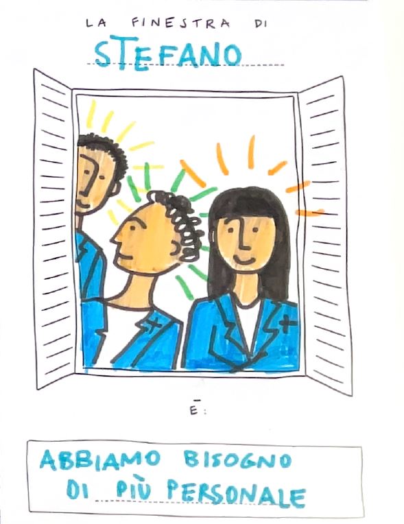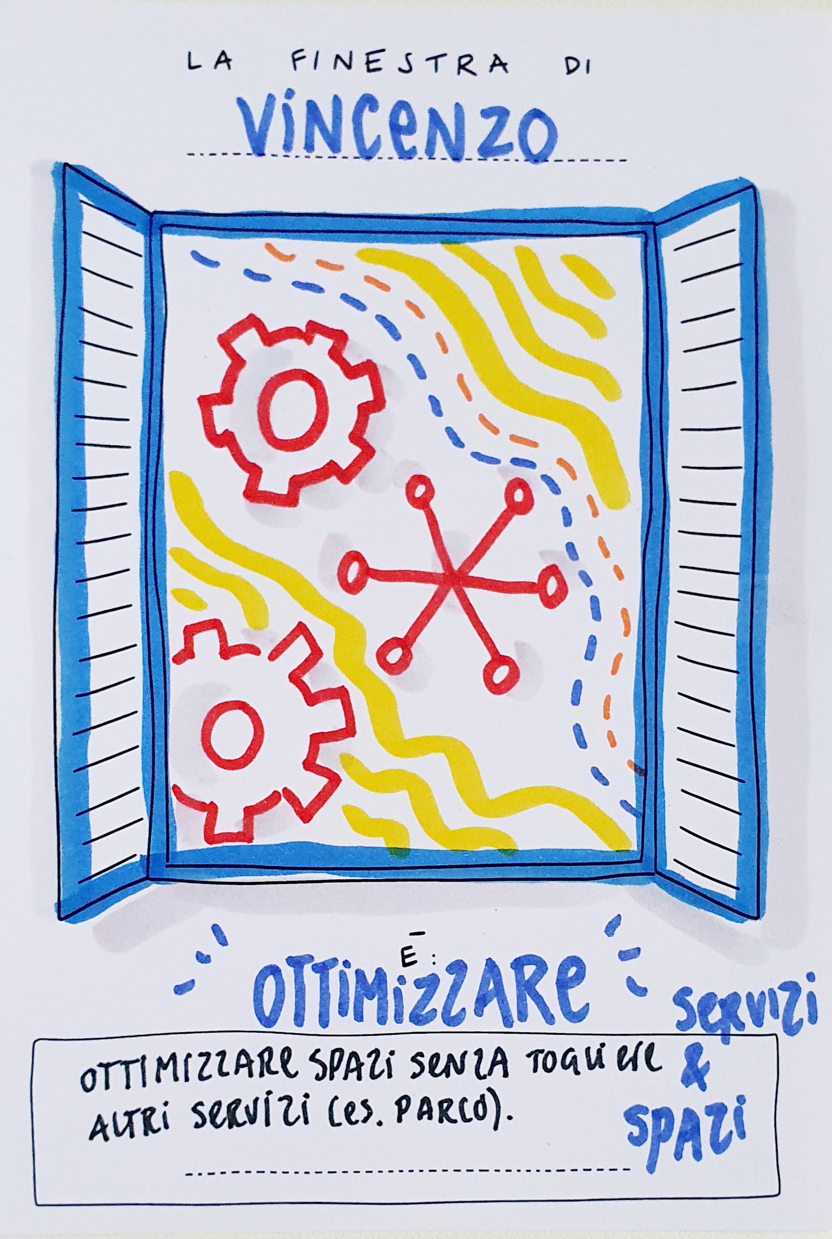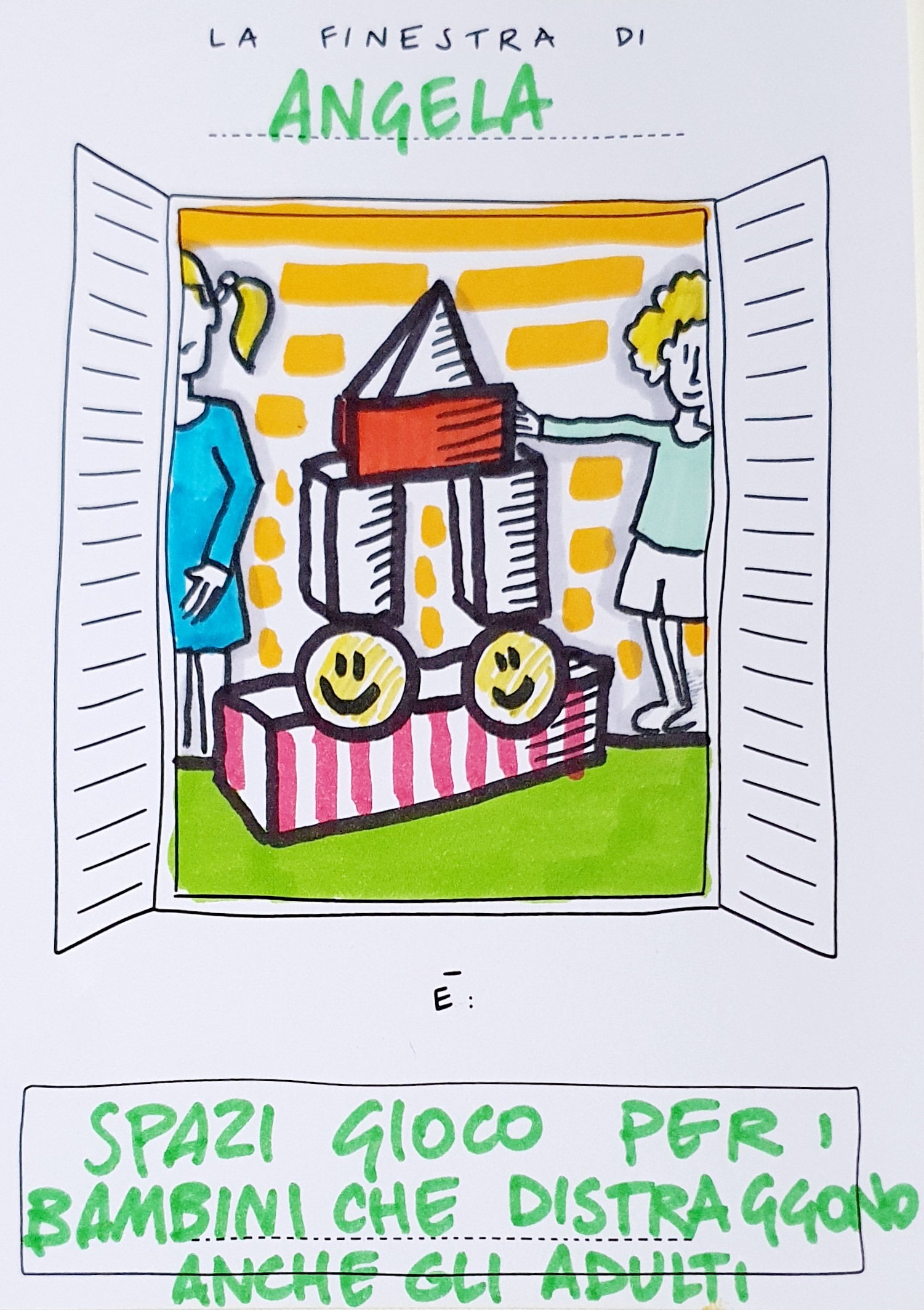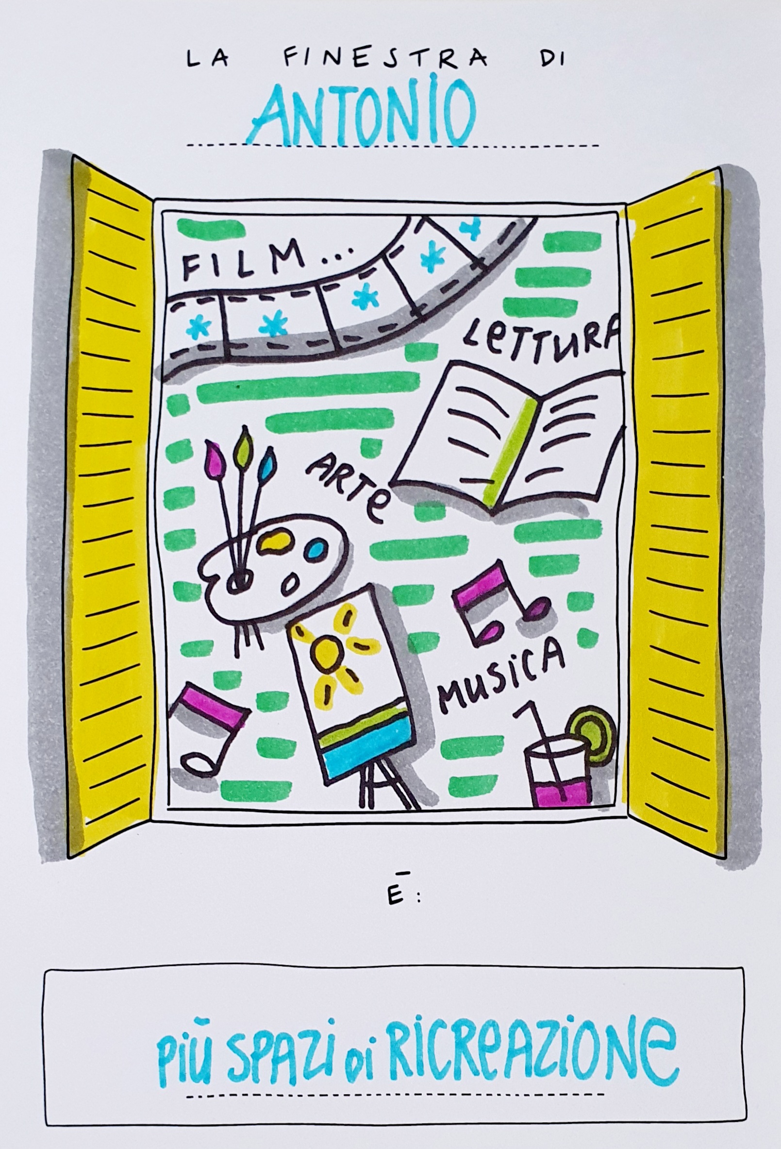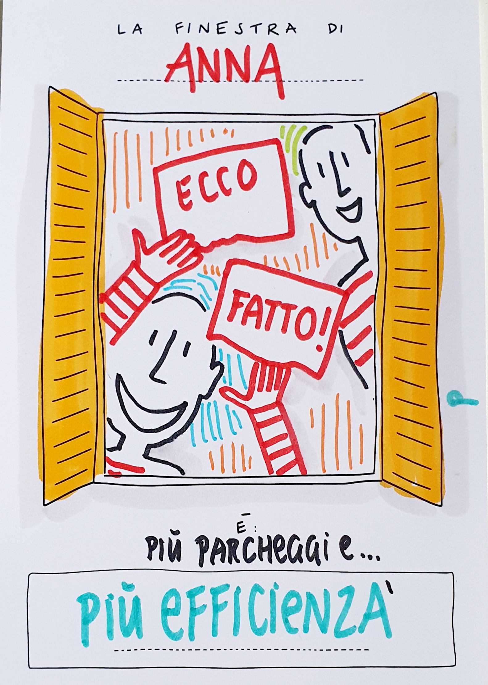 Le risposte a queste domande venivano tradotte istantaneamente in illustrazioni poi ricondivise su uno dei pannelli predisposti, alimentando così ulteriormente il confronto.
