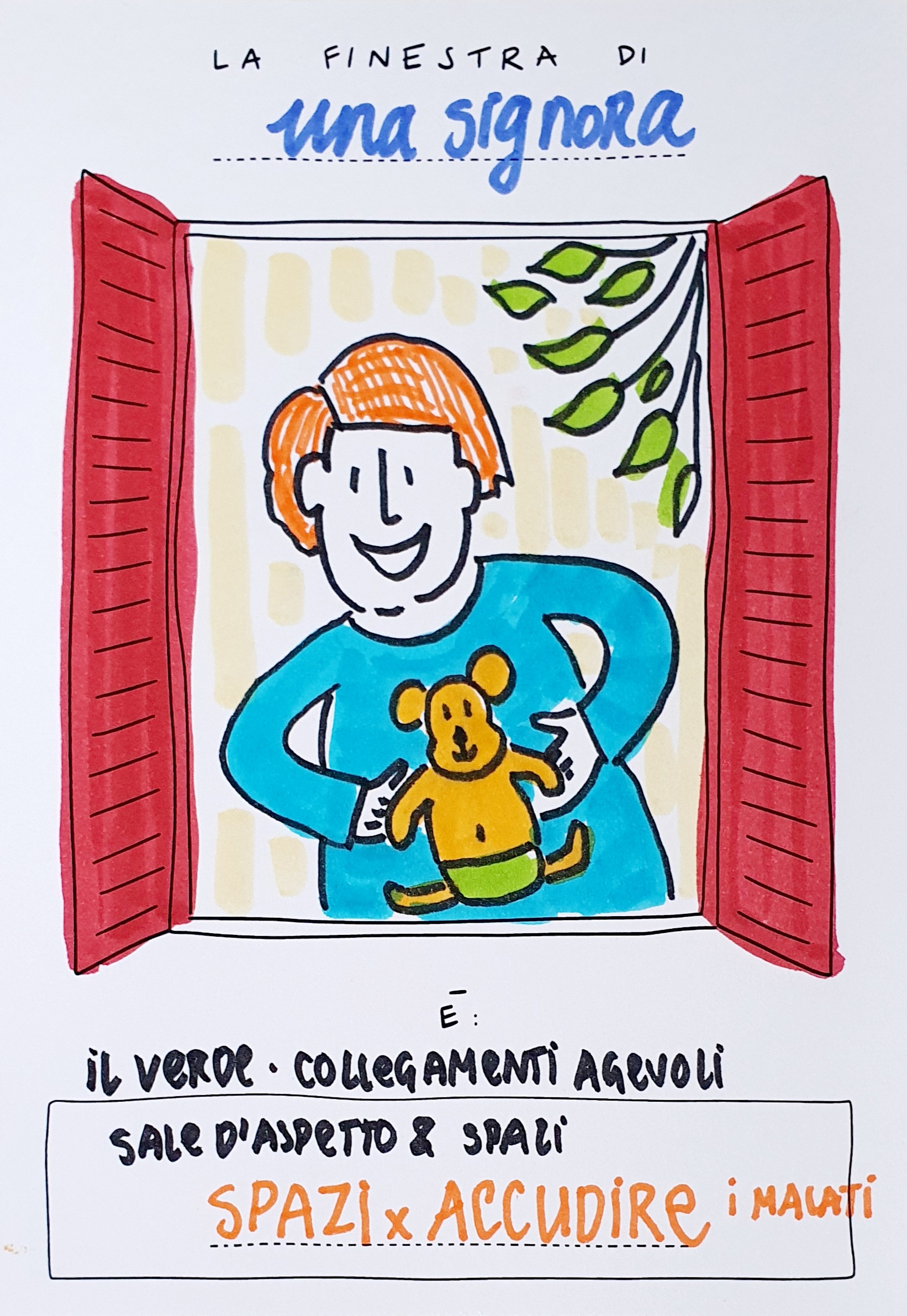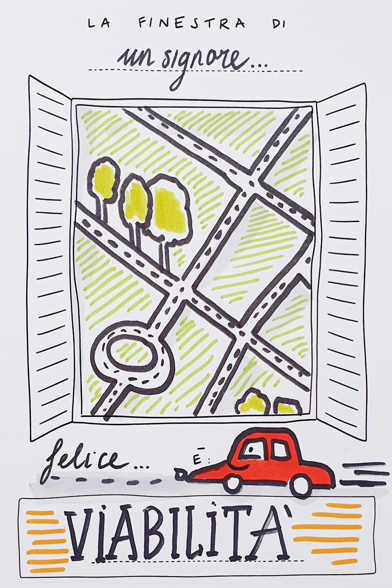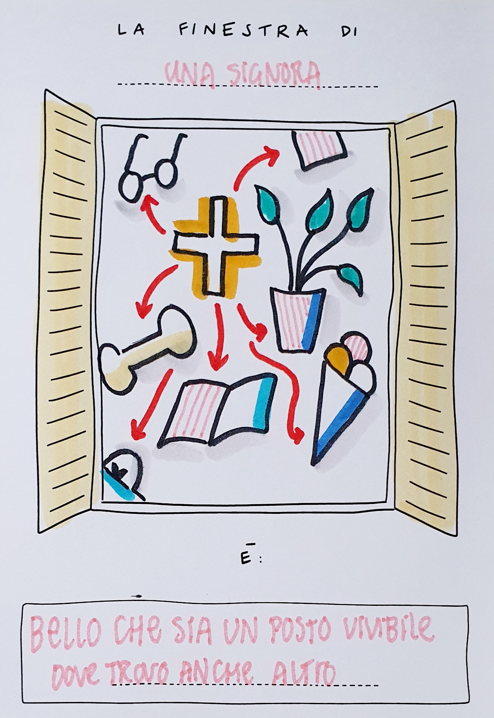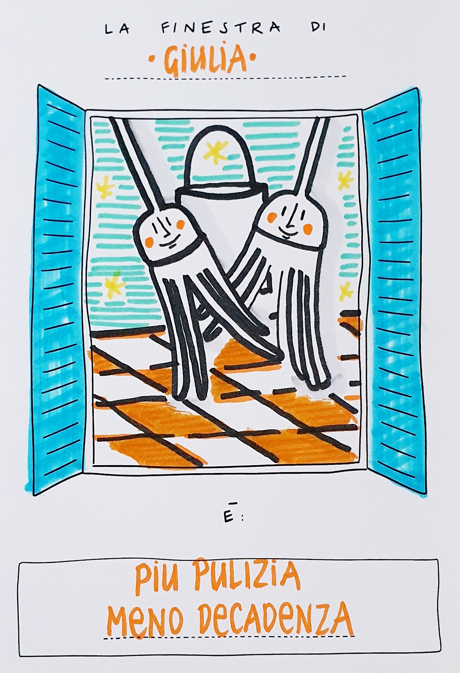 Le risposte a queste domande venivano tradotte istantaneamente in illustrazioni poi ricondivise su uno dei pannelli predisposti, alimentando così ulteriormente il confronto.