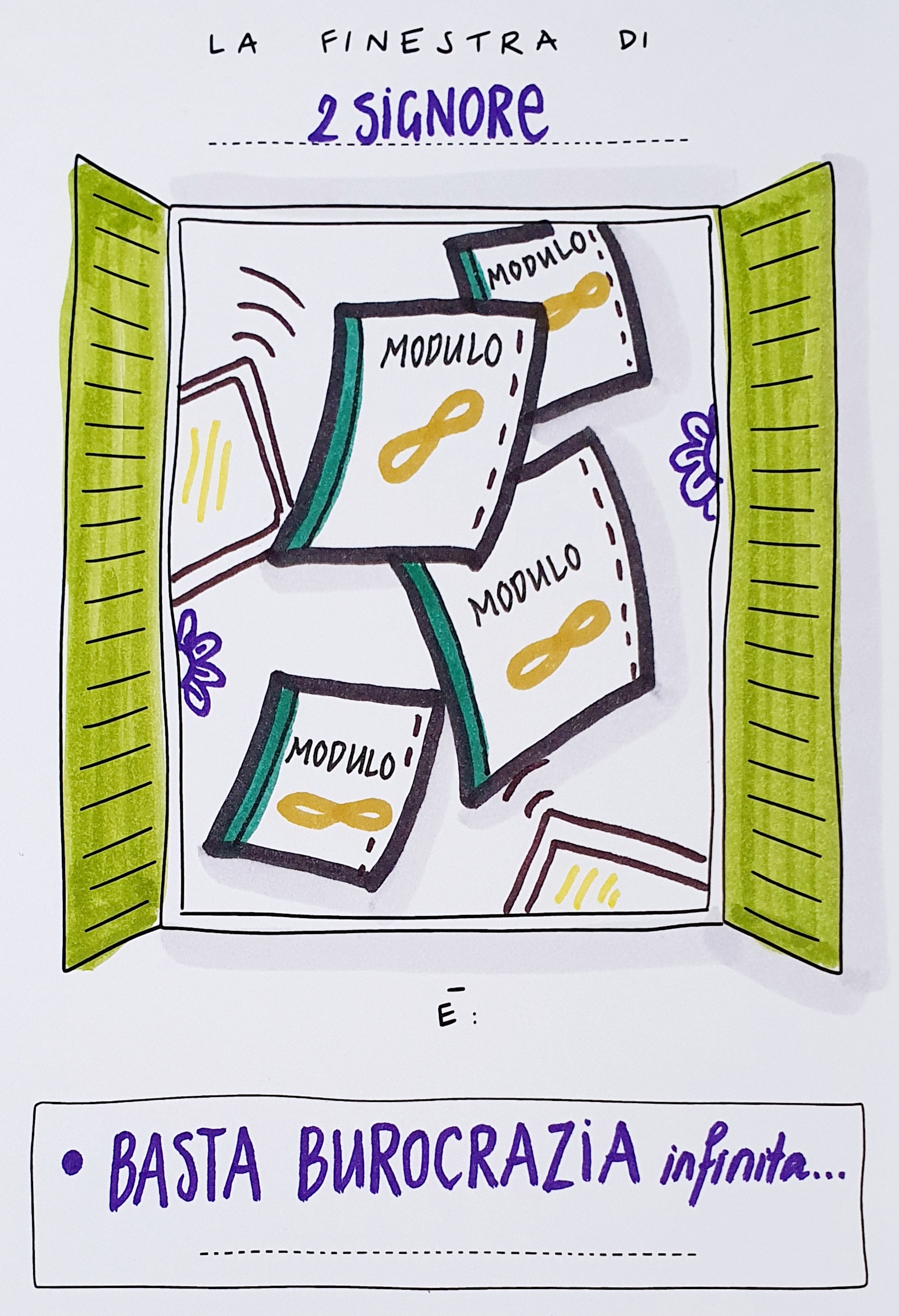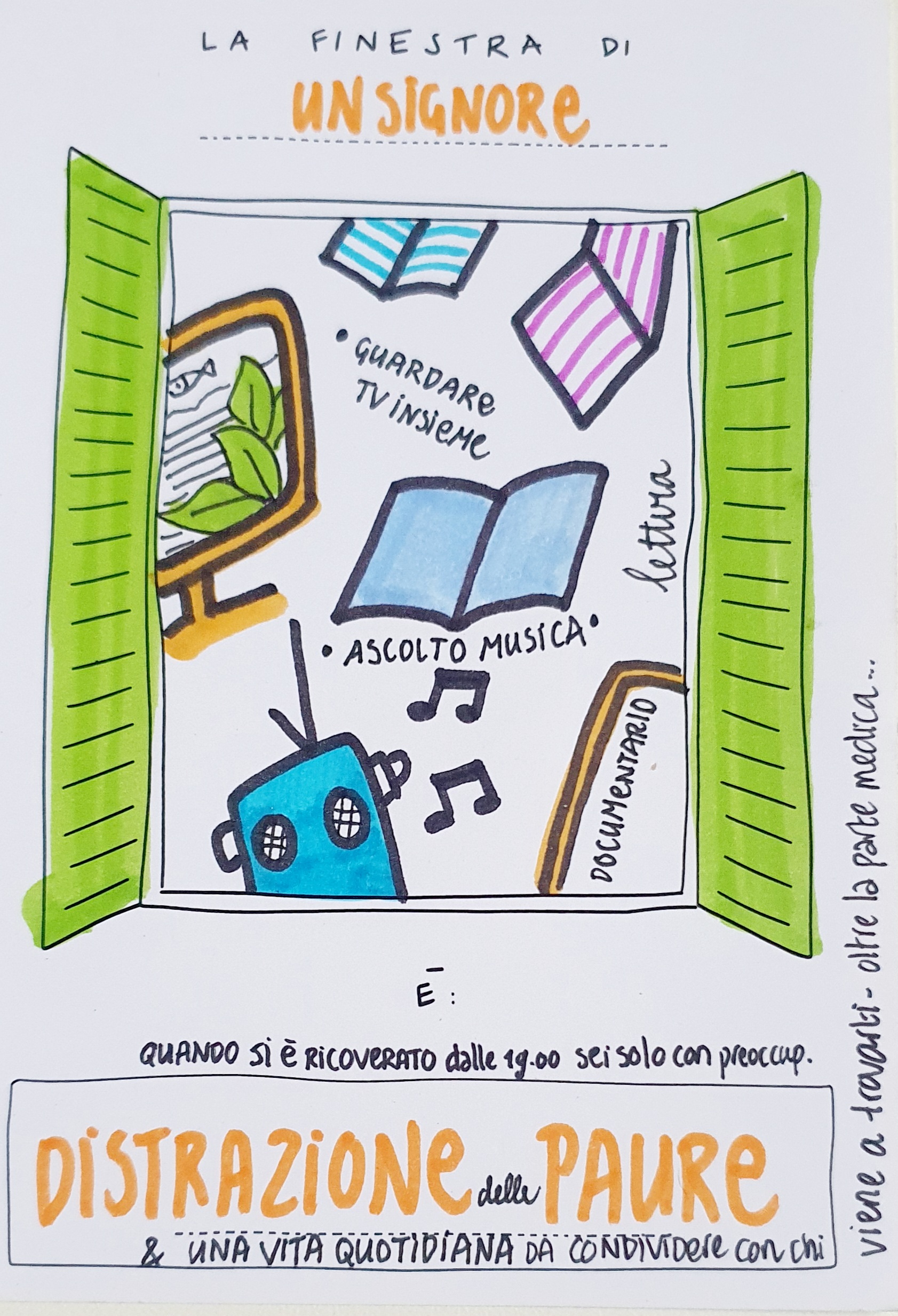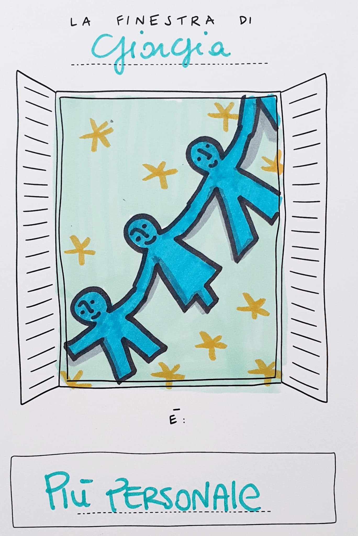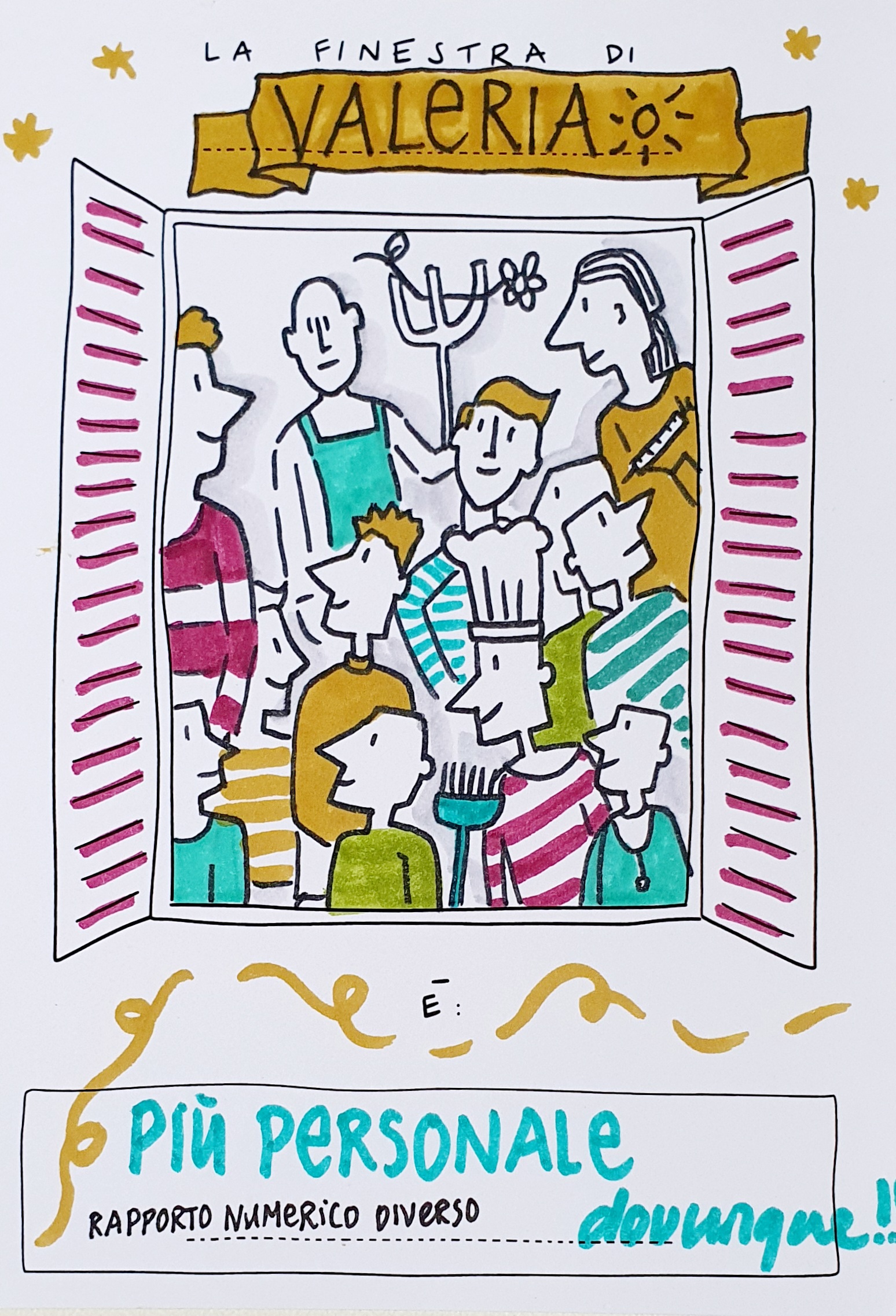 Le risposte a queste domande venivano tradotte istantaneamente in illustrazioni poi ricondivise su uno dei pannelli predisposti, alimentando così ulteriormente il confronto.