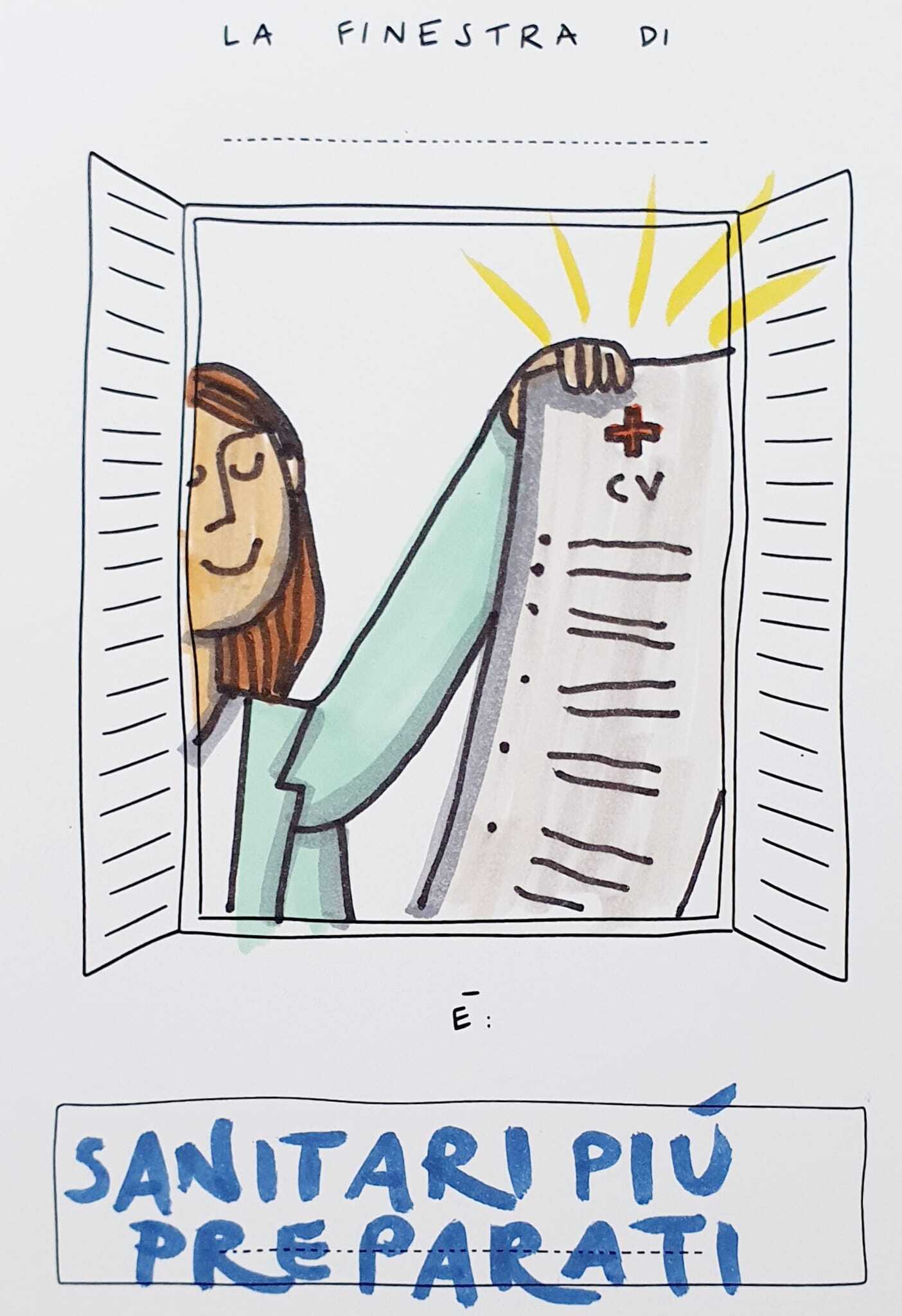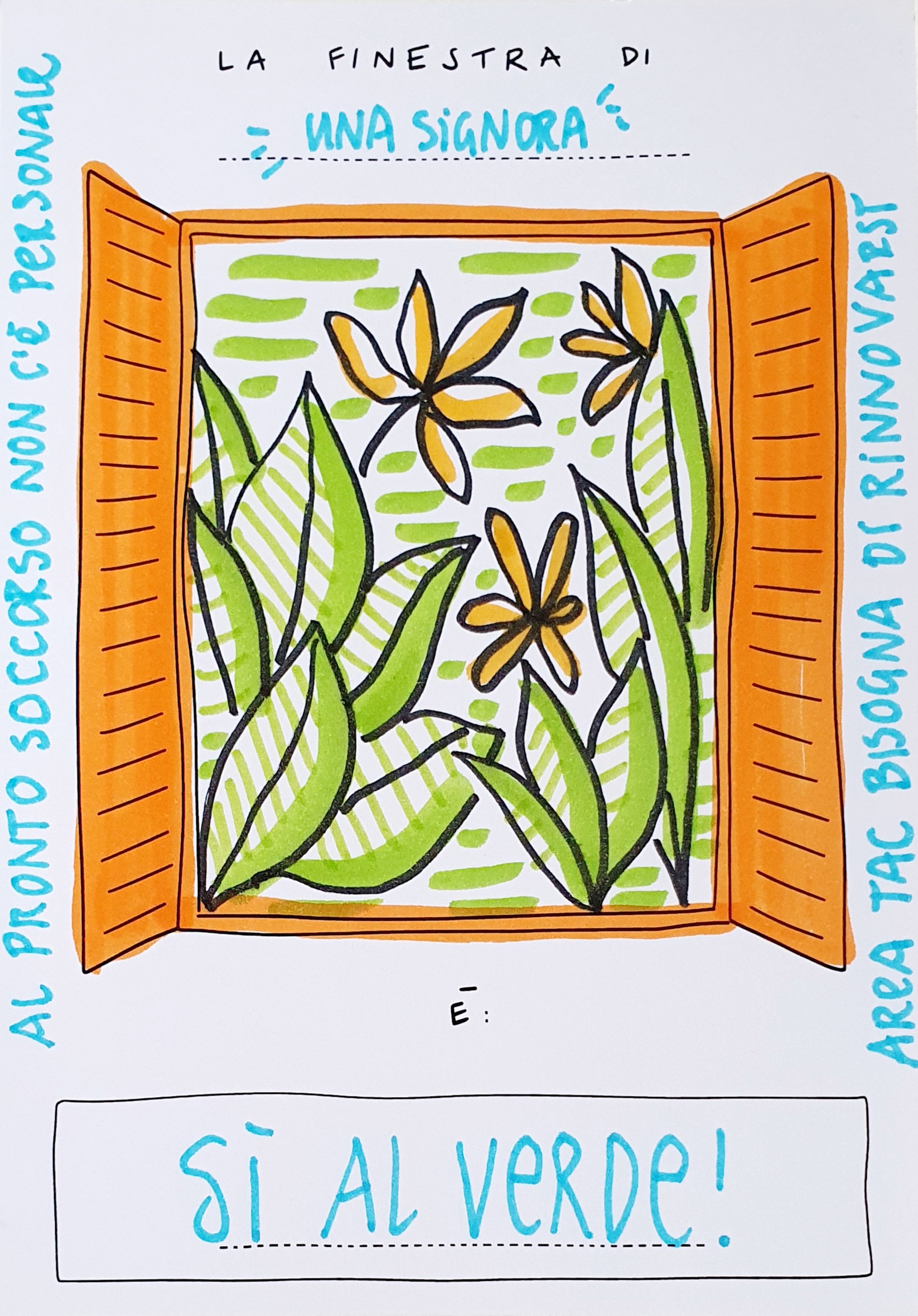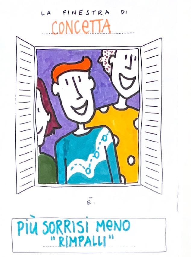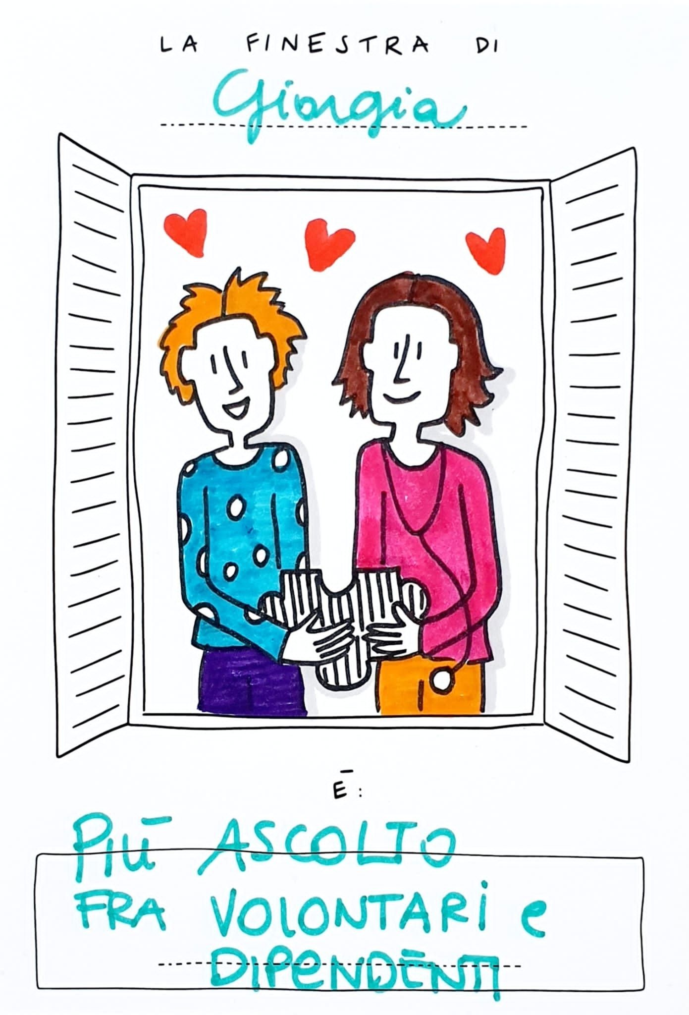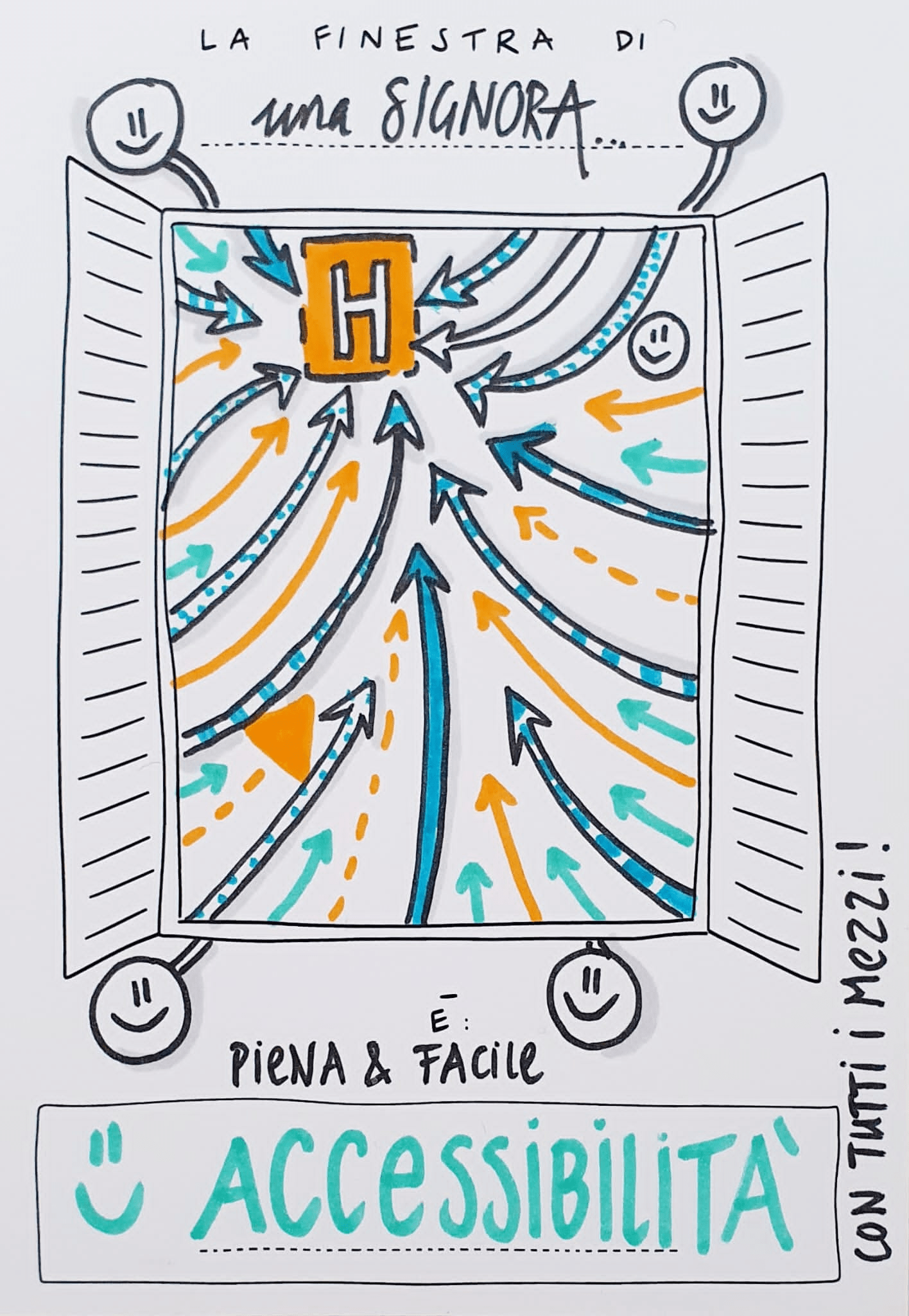 Le risposte a queste domande venivano tradotte istantaneamente in illustrazioni poi ricondivise su uno dei pannelli predisposti, alimentando così ulteriormente il confronto.