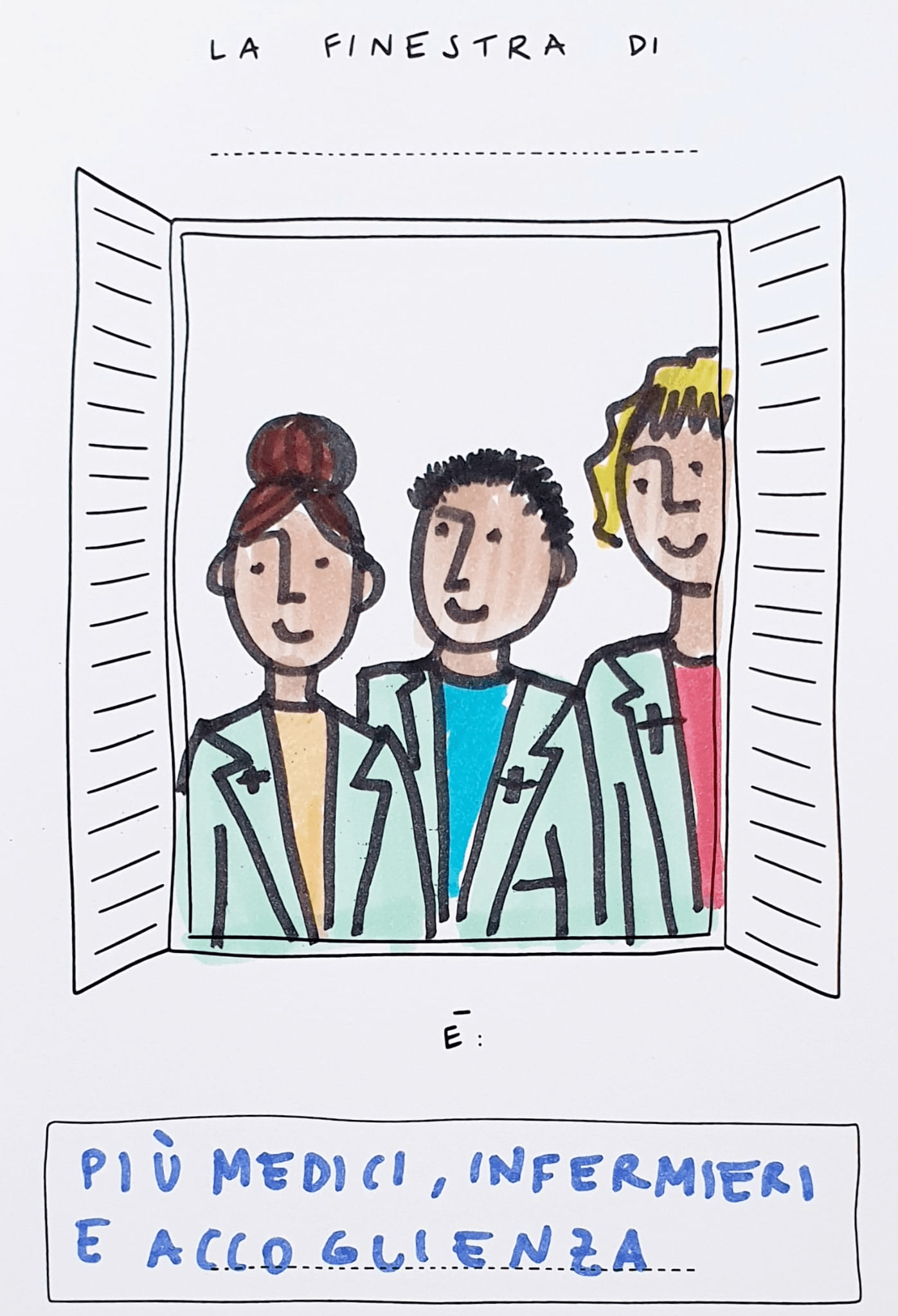 È stato infine chiesto loro di rispondere ad alcune domande. In particolare, la domanda centrale posta è stata la seguente “Che cosa serve, secondo te, per fare di un ospedale un luogo accogliente?”.